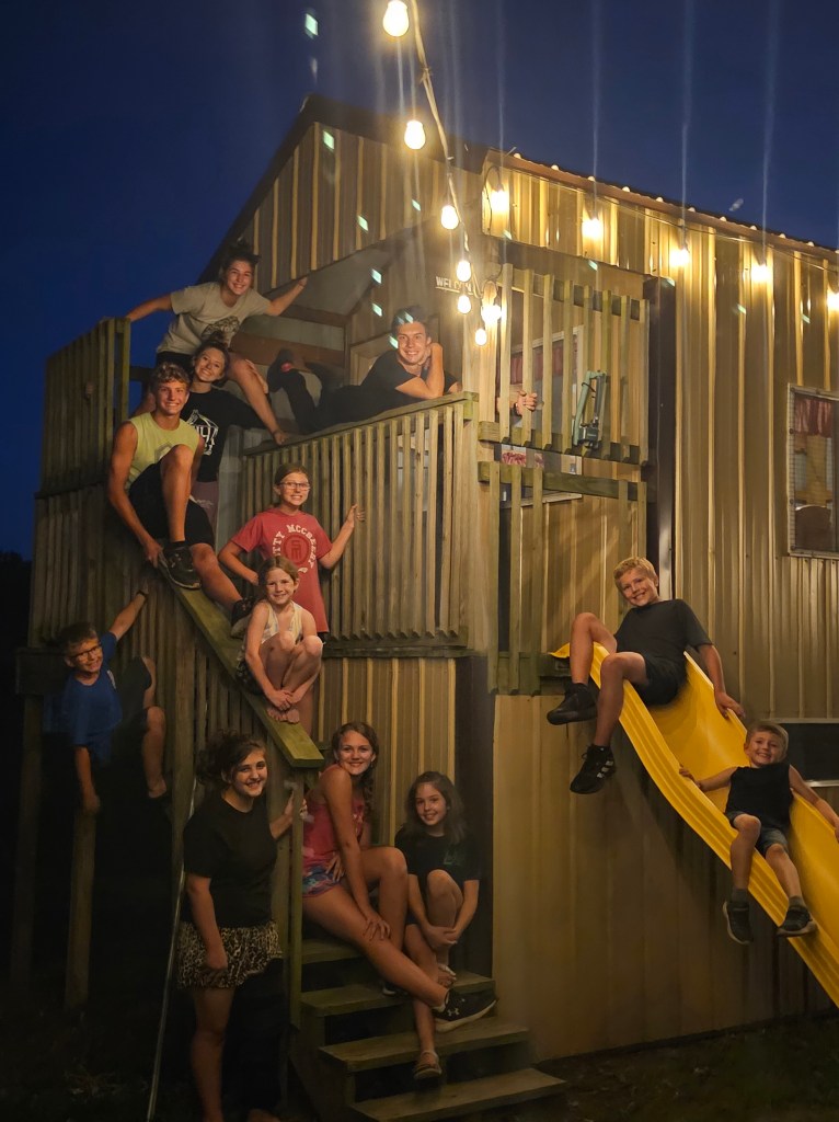 The bottom of the playhouse now holds about fifteen used bikes, and when the kids are all here, the circular driveway at this farm looks and sounds like a NASCAR speedway.