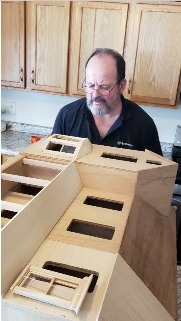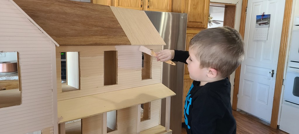 We did make a dollhouse that resembled the home I live in, and I am thankful to say this has been home to my family and myself for over 34 years now. What a blessing. The inside of the dollhouse is not complete yet, but perhaps this year by Christmas. Who knows.