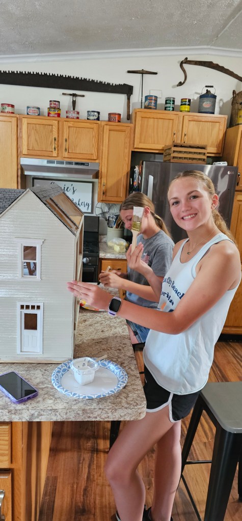 Two of our seven granddaughters working on the house. Alaina and Emma
